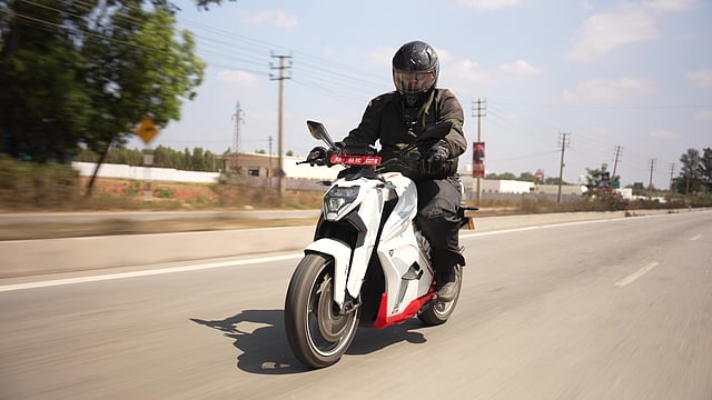 The weight balance, the front-end feel, the tyres all fell right and precise. The engine braking and various modes made use realise that you barely needed to touch the brakes on this slightly bigger than usual go-kart track. The F77 SuperStreet features an upright riding posture and comfortable ergonomics, enhancing the overall riding experience while maintaining a high level of engagement as before. This has also made sure that the stiff ride quality transferred to the rider's shoulder and body isn't harsh and made life much more comfortable on the road as well. The 10 kg lighter weight, the slightly increased rake and trail along with a new riding position makes it a rider delight never seen before in an electric motorcycle.