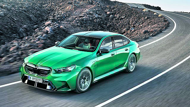 A standout feature is the M Carbon Roof, which reduces the car’s weight by over 30 kilograms compared to the panoramic glass sunroof variant. This lightweight roof also lowers the vehicle’s center of gravity, accentuating the all-new M5’s sleek, low-slung profile. Part of the M Carbon exterior package, the roof is complemented by carbon-fiber mirror caps and a rear spoiler. Alternatively, customers can opt for the panoramic glass sunroof, designed as a body-integrated module. At the rear, the signature M twin exhaust tailpipes, finished in Black Chrome, seamlessly blend into the rear apron. The car also rides on striking M light-alloy wheels, measuring 20 inches (285/40 ZR20) in the front and 21 inches (295/35 ZR21) at the rear, enhancing its dynamic stance. Braking is handled by standard M Compound brakes, with an option for advanced M Carbon ceramic brakes.
