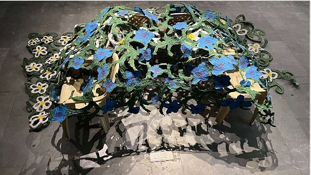 Another work, Space, is made from upcycled paper taken from old books and draws on childhood memories of building temporary shelters. “That space we used to create when we were kids, such as covering chairs with bed sheets to make forts — that is what the work is about,” Manu shares.Together, What Remains: Heritage Between Memory and the Present ask viewers to pause and reconsider what heritage means to them.