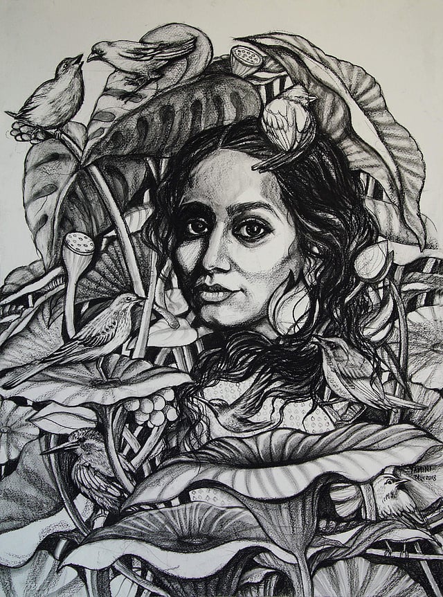 Relationships and experiences reflect differently on each of us, and that is what makes the language of art fluid. Aflame, a collection of 50 drawings with charcoal on paper by Yamini Mohan speaks of such intricate details from a very personal space. Hailing from Kannur—an alumna of College of Fine Arts, Thiruvananthapuram—this 32-year-old artist took over a year to compile frames showcased at the exhibition. As a mother of two, she looks at drawing as a vent for the multitude of feelings she processes daily. “I believe we all share few fears, delights and insecurities, but are wary of speaking about them. I am trying to shed light on such inhibitions,” she explains.