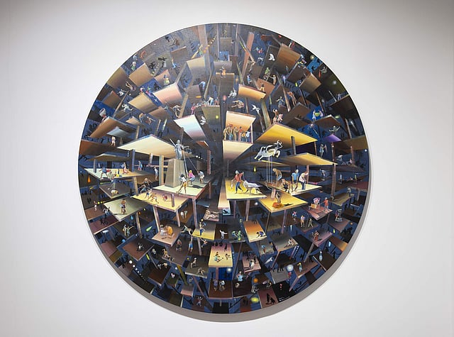At Bastion Bungalow, Bhagyanath has given his 3D painting that gives an abstract representation of day-to-day life. The artist’s innovative approach lends the sphere-shaped work a three-dimensional feel to the viewer. “There is no greater pleasure than being able to contribute to the relief of the common people,” says Bhagyanath, who is a participant at the ongoing 108-day Biennale as well. “As artists, our works are what we can make resourceful.”