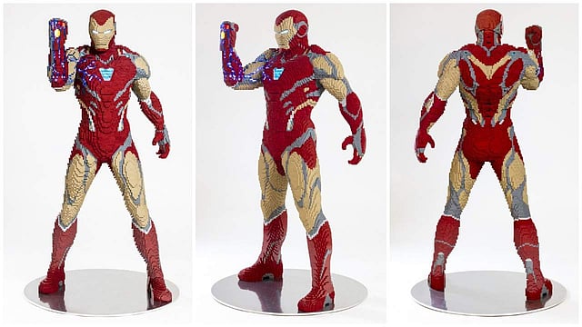 Composed of 35,119 bricks, the Iron Man LEGO model stands six and a half feet tall and weighs 188 pounds. LEGO Master Builders took 255 hours to design and build it.