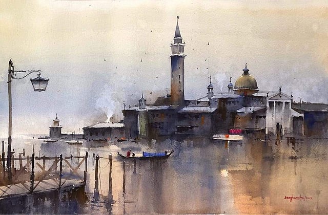 “It was a trip to Europe, which inspired me to draw landscapes, as I was mesmerised by the countryside and the entire ambience of Europe. I even chose the colours which would be apt in depicting the places, surrounding the Mediterranean,” says Sanghamitra whose single avant-garde work will be displayed at the exhibition.
