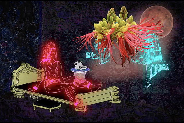 Chitra Ganesh, the multi-disciplinary artist and native New Yorker, whose paintings and video work can be seen as a part of the fourth edition of Kochi-Muziris Biennale, spoke to a public audience at the Biennale Pavilion about her practice, from early works to ongoing projects.