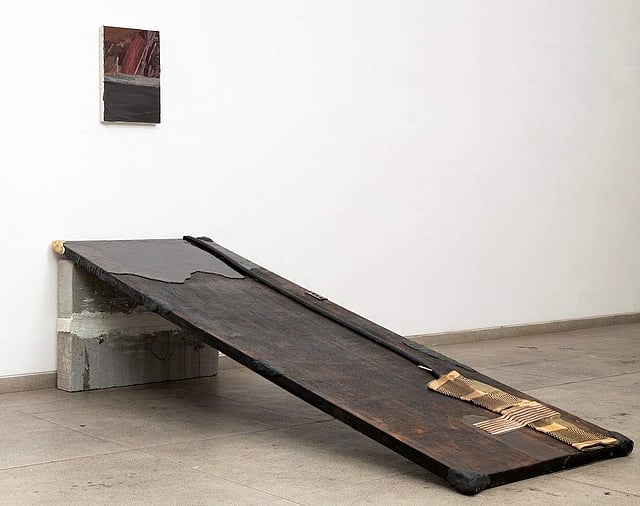 The process of applying paint, scraping it off and slapping it on makes it undecipherable often referring to those moments of life where sequences often get haphazard and blurred by the lapse of time. The artist has intelligently used ramps and beams, which are usually employed to support or oppose weight, in the form of sculptures. She has ingeniously melded the abstract forms with discarded objects and personal relics, which have turned into signposts of the inner world.
