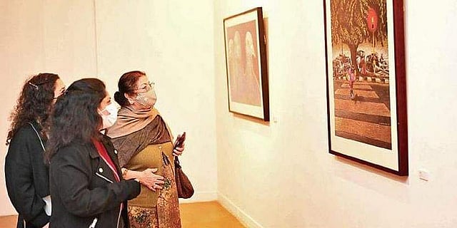 Adorning the walls of India Habitat Centre’s Visual Art Gallery, Viraj Anand’s canvases seem more like windows into a day (or night) in Delhi, than paintings. A swell of chatter fills the gallery as observers mill around, much like the people in the paintings they are trying to decipher. The show titled ‘Naatak Marg’—on display till December 22—is, as the artist emphasises, “a metaphorical place where the drama of the city ensues.” His paintings depict a city moving at dizzying speed, perhaps, at times, even leaving behind the people who live in it.