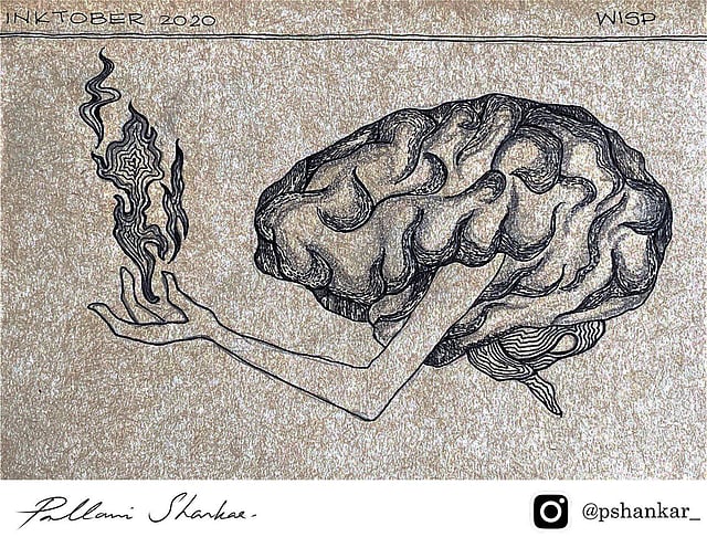 Pallavi Shankar is an artist from Bengaluru, who's using her art to deal with the uncertainties of life. Her art doesn't adhere to a singular form but flows through her in various styles and forms. She dabbles in both traditional and digital media like acrylic paints, watercolours, black micro-tip pens, charcoal pencils and 2D sketches. Her art incorporates ideas inspired by everyday randomness and has the ability to make the viewer feel both comfortable and vulnerable at the same time. We talk to her about her work: