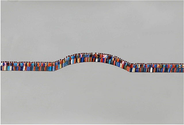 It’s this emotion that seasoned artist Apurba Nandi explores in his latest works that are being exhibited at his solo show titled A Parade of Uncertain Destinations. Delhi-based Pallette Art Gallery is hosting this show both offline and virtually on their website. Tiny figures, some queuing up, others thronging towards the same direction, and multitudes lying aimlessly on the ground —these are the subjects of Apurba’s paintings.
