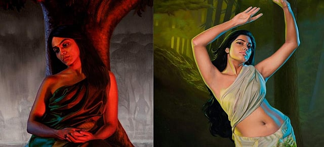 They are more real and more modern, boasting identities separate from their roles as mothers, daughters and wives. Jay believes that his work has its own unique style when compared to Raja Ravi Varma’s, even though he does take inspiration from him. “Stylistically, I would say, it is very different. My colour palette, the way I deal with my compositions and my subject matter are very different,” shares the artist who has also dabbled in photography and graphite works. The women in Jay’s paintings are bold and liberated. Ahalya’s piercing gaze captivates the viewer, while Draupadi is a young woman, full of radiance and curiosity. “I’m glad you noticed that,” Jay shares, adding, “I have tried to give these women as much emo-tion and as much importance as I can. I was exposed to powerful women during my childhood. My mother is an artist, so I draw a lot of inspiration from her. She has so much creativity and I really admire that.”