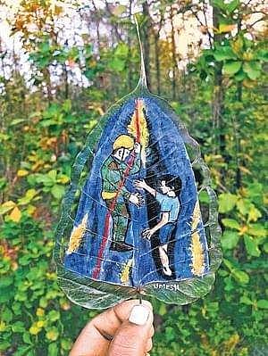 Umesh, who is a mechanic at a workshop, creates leaf art during his free time. In a short span, he has made over 60 of them. But the artist isn’t too keen on selling them. “Many people ask if I can create leaf art for them. But I don’t have the time. I make art for my own happiness,” he says.