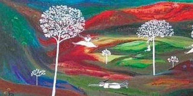 Mariam Jasmine’s paintings handle myriad topics and emotions. In one of them, she dreams of another plane, far away from earth filled with women who can fly. Women are frolicking outside flying from never-seen-before trees. “One of my paintings is that of a room at my home. It’s where many women in my family breathed their last. The space is significant to me,” she says.