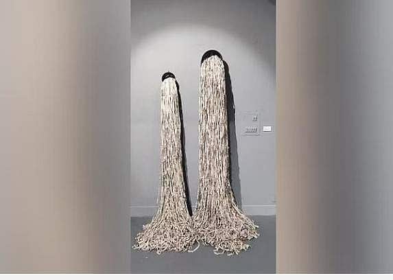 City-based artist Sanjay Sharma’s two artworks displayed in this exhibition are seemingly simple yet gripping, and can keep the viewer hooked for long. These works are striking statements on political and social issues. The works reflect a common existentialist—the search for our own existence