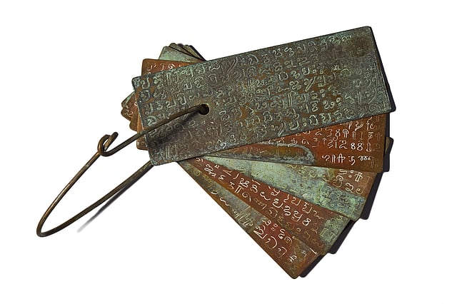 It all began when she attended a sculpture workshop in Gwalior where she discovered bahi kathas, cloth-bound books used to keep accounts. “I bought 30 books in different shapes and sizes, and I asked bronze casters to cast these in the metal. Some of this work is at the Gwalior library,” she recollects. This work triggered an interest and led Pushpamala to create the pieces in this show — Atlas of Rare And Lost Alphabets and Nara, two sets of copper plate sculptures with etchings and inscriptions.