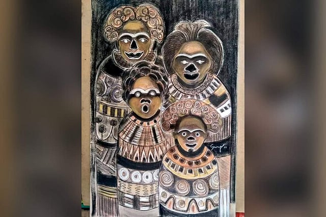 Anthoni’s works are a reflection of memories and moments from his life. He’s not the one to paint within the confines of four walls, but someone who’s always on his feet; in search of stories that later come to life through colours and sketches. “I usually don’t let caste interfere with my work. But, to tell the stories of my ancestors, I have no qualms in accepting my identity as a Dalit,” stresses Anthoni, who dabbles in multiple media. “I’m adaptable with work. My priority is to transfer my feelings into the medium. Every visual has a message,” he adds.