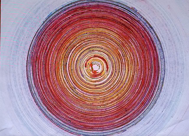 Seasoned artist Bodhi Selvam’s and up-and-coming artist Mathew Raj’s works are similar yet different. Curated by Sadhna Menon of ArtnBlu, the show Kalpa, brings their works together and is currently on display at Grand Mercure Bengaluru’s Vasantha Art Gallery. Concentric circles are the key elements of both their works and Bodhi’s paintings also have Buddha’s silhouette as a prominent motif. For both artists, inspiration comes from the act of breathing — the basis of life. Mathew talks about how every line he draws consumes a breath, and Bodhi shares a similar insight.