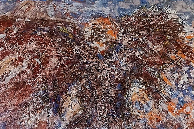 Dr Avani, who is an artist herself, is set to display her artwork as well. She tells us, “It’s an abstract expressionist work. I have painted a huge bird that is trying to fly. Although it looks relaxed and calm from the outside, internally, there’s something which is holding it back. It’s symbolic of our desire to break free, despite the forces that bind us.” She has used straw, mud, and terracotta in her painting.