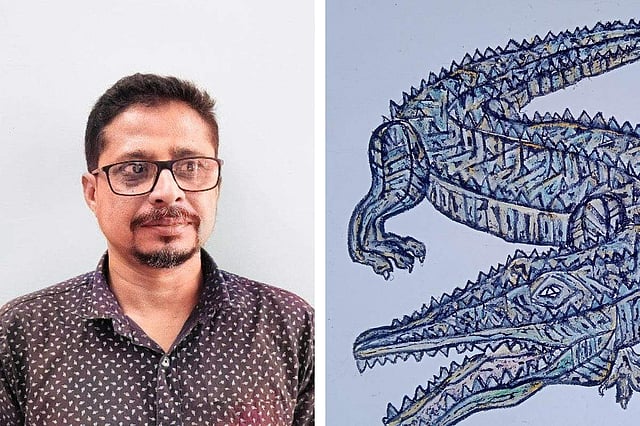 And the animals that feature in this series include bulls, cats, crocodiles, dogs, lions, monkeys, sheep and gorillas. If you look carefully, you will discover that most of them are quadrupeds. And this selection is not by chance. The artist, who hails from West Bengal and is now based in Bengaluru, explains, “I find the anatomy of quadrupeds way more interesting than of humans. They stand on four limbs, which means that they have a more stable equilibrium than bipeds; and that is what makes sketching animal anatomy more challenging, and at the same time, interesting.”