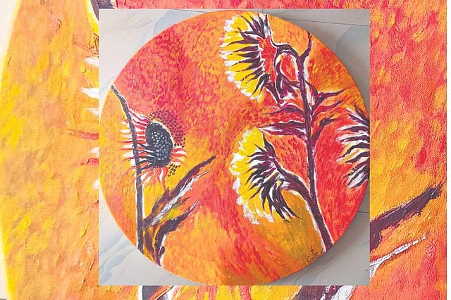 Since the collection of paintings is titled The Sun Flowers, Gita consciously put in an effort to not make anything close to Vincent Van Gogh’s famous Sunflowers. “I wanted to keep mine simple.”