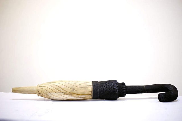 West Bengal-based artist Arjun Das is also displaying his art in the form of wood relief carving. Extremely passionate about narratives related to migrant labourers, Arjun uses visual references from Indian cave architecture to portray the historic recurrence of political power oppressing the working class. He says, “I have portrayed the famous Hatibagan market in Kolkata, a bustling hub where a diverse array of workers — labourers, car painters, plumbers — congregate to ply their trades. In this marketplace, they find a space to work and establish a presence, identifiable by the tools they carry. Through my depiction, I aim to question or restate the way these tools become the identity of workers.”