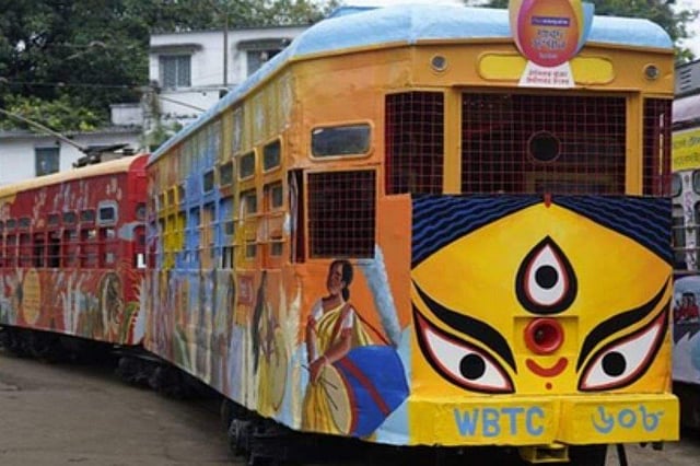 Two bogies of the tram have been beautified. The exteriors of the first bogie capture the extraordinary 38-year journey of Asian Paints Sharad Shamman (APSS) in Kolkata. It features hand-painted artworks honouring Kumartuli - the traditional potters' quarter in North Kolkata where Durga idols are sculpted. It also encapsulates sindoor khela and dhunuchi dance. The exterior artwork showcases the first print advertisement and the first winning pandal. The bogie also highlights the unique stories featured in People of Pujo - a documentary series capturing the lives and passions of those who make Pujo the celebration what it is! On the tram we see a visually impaired artist who has commendable skills and women dhakis who challenge the masculine stronghold of the performing arts.