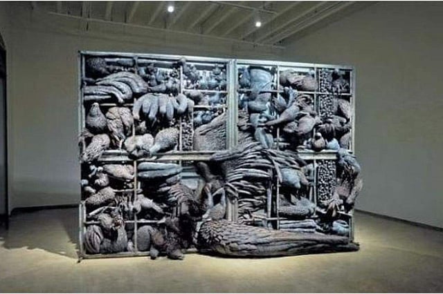 The universally shared mental chaos is rendered a poignant form in the central work, ‘Spaces of Being’. The 7x10 feet work recreates the unsettling image of a packed-over-capacity chicken coop, where birds of all kinds and sizes are stuffed into the quarters. “It talks about the frustrations in one’s mind, where thoughts clash with one another. We try to compartmentalise, but that seems difficult with an overthinking mind, quite similar to the birds in a chicken coop. They are dying, fighting birthing... everything is happening together,” Gupta elaborates.