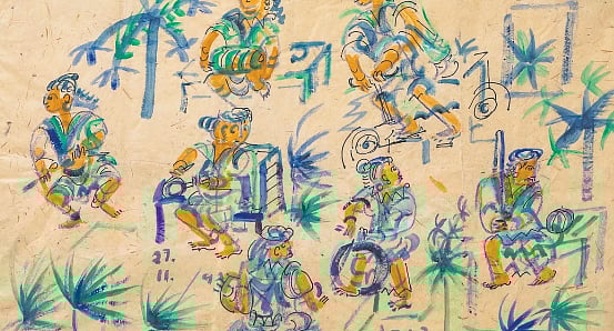 The aim was to create awareness about Leela Mukherjee’s works, who had remained away from the limelight that shown bright on her husband Benodebehari (though posthumously)—a fellow student at Santiniketan—and daughter Meera, who has been internationally acclaimed for her hemp sculptures. “Although archival documentation started in 2019, due to the pandemic, we could not begin work in earnest until 2022. And it took almost two years to put the exhibition together,” he says.