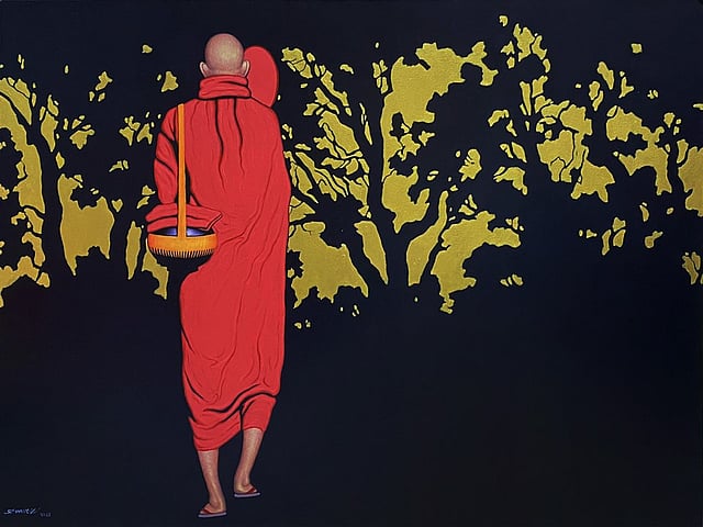 Artist Win Zin shares, “To be a Buddhist is to follow and respect the teachings of the Buddha. As a devoted believer, these teachings deeply inspire my work.” He conveys that religion offers peace and solace during tough times by instilling faith and hope for a brighter future, providing comfort and reassurance amidst adversity.