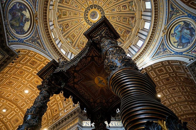 The structure, which is positioned over the basilica’s main altar to provide a ceremonial covering for the tomb of St. Peter underneath, dates from the 1620s–1630s, when Pope Urban VIII commissioned Gian Lorenzo Bernini to create a canopy for the apostles’ tomb.