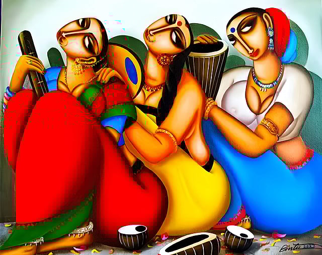 Art fusion is all about conceptual exploration. Kolkata-bred artist Pintu Paul prefers acrylic over oil paintings, owing to the time-consuming nature of oil-based art. He might utilise the quick-drying acrylics for certain aspects of his piece, allowing for rapid layering and experimentation. Meanwhile, the richness and blending capabilities of oil paints might be employed for more intricate details or specific effects.