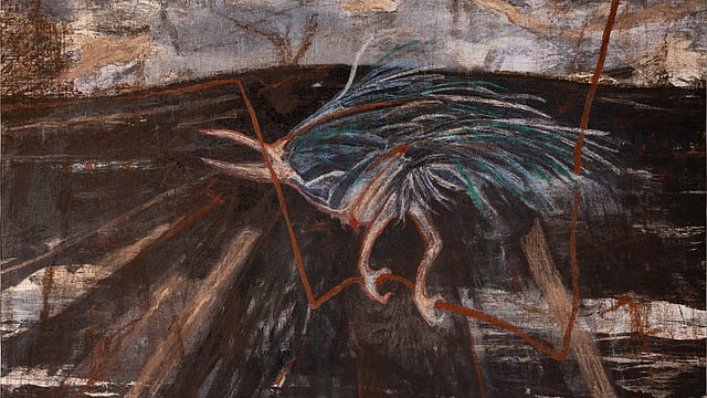 The name of the exhibition a v a m a n a v a is derived from Rabindranath Tagore’s translation of the word as ‘sub-human’ that denotes the space in between being an animal and a man. The paintings are critical of the existence of a human vis-à-vis curiosity, terror and menace. It navigates through an Untitled set of watercolour art, oil and dry pastel on acid-free paper, rice paper and other mediums with striking creations like A Flying Creature or Shadows and the Empty House.