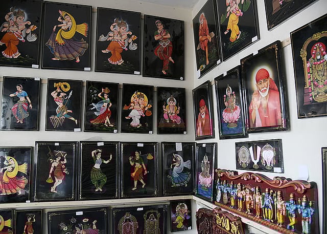 Speaking about what makes Nirmal paintings stand out, Hakeem says the finishing is key. “A clear coat is essential. Without it, the work looks incomplete. We are now diversifying — painting on canvas and cloth as well. NRIs especially prefer canvas works, and boutiques approach us for painted textiles. Nirmal painting is a team effort, passed on through generations. When you buy a Nirmal artwork, it can last for decades. It can be repainted, washed, and restored again,” he shares.