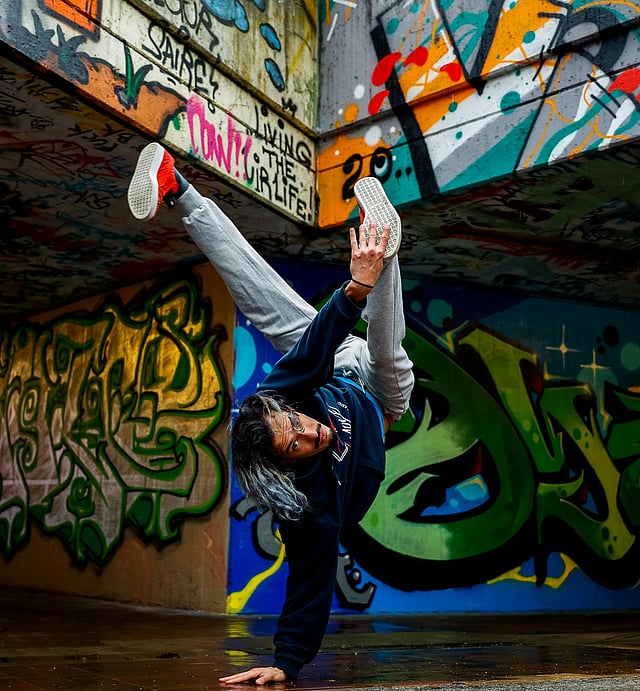 Conversely, hip-hop culture has significantly shaped the evolution of graffiti. The music, dance and fashion associated with hip-hop have provided thematic content and stylistic inspiration for graffiti artists. The dynamic rhythms and lyrical flows of hip-hop music have influenced the stylistic elements of graffiti, leading to more intricate and expressive designs. The ‘wildstyle’ of graffiti, characterised by complex, interlocking letters and vibrant colours, mirrors the complexity and creativity found in hip-hop music and dance. Graffiti is understood as a visual expression of rap music, just as breaking is viewed as a physical expression.
