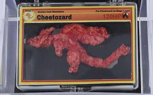 The item in question is a 3-inch long Cheeto shaped in a way that closely resembles Charizard, the fire-breathing dragon from the Pokémon franchise. To preserve its novelty value, the Cheeto was mounted onto a customised Pokémon card and sealed inside a clear storage box.