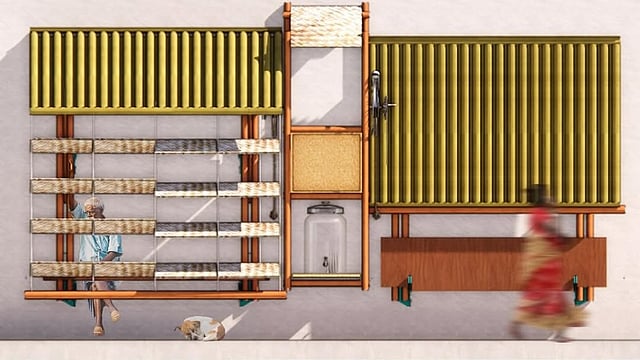 The nature of its design is such that it will listen to whatever context it is placed in and respond by being accommodating of the situation — in terms of being scalable, replicable, easy to install or detach and using materials immediately available and inexpensive to the direct user. The architects of The Neralu Heat Shelter, Ankritya Diggavi and Sagar Kandal, brought in a practical focus on creating functional cooling solutions that respond directly to informal workers’ needs, using materials and forms that respect both function and cultural context. “Informal workers form the backbone of several economic systems and are one of the most resourceful communities in terms of adapting to their working situation. Their inputs and thoughts were directly transcribed in the process and physically realised in this current form,” Ankritya elucidates