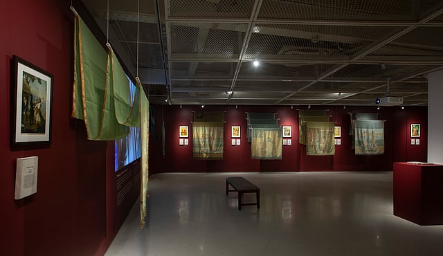 Raja Ravi Varma’s extensive travels and observations of people are reflected in his paintings, where the facial features and expressions are very natural and realistic. Moreover, one would find how he weaves in cultural nuances through traditional jewellery, different sari drapes, and even the background, making his art depict people across cultures, traditions, and economic strata. With growing popularity came the Raja Ravi Varma Printing Press, where chromolithographs accompanied his works and were then replicated. Three of these chromolithographs have been displayed in a rare preservation effort after the press itself succumbed to fire. Japanese porcelain and German Majolica tiles on display also show his global influence.