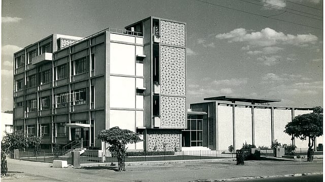 Triveni’s distinct architecture, its pre-cast concrete jaalis, the grey facade, textured walls, and the green courtyard giving the sturdy, modernist appeal, also awes visitors. The building’s blueprints and designs are also exhibited at the show.