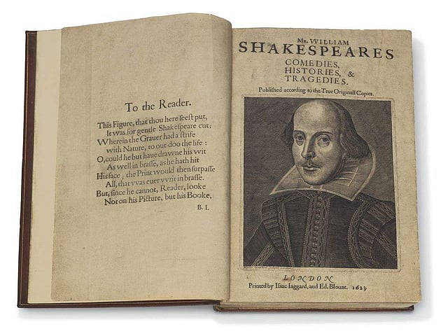 The book was published in 1623 by Shakespeare’s friends and fellow actors, John Heminge and Henry Condell, who collaborated after the writer’s death to compile this authoritative edition of his work.