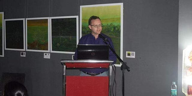 Surrounded by the marvellous paintings, artworks and illuminated marble sculptures on the grey walls of Kalakriti Art Gallery at Banjara Hills, Robert Stephens introduced his book Bombay Imagined to the audience on Saturday evening.