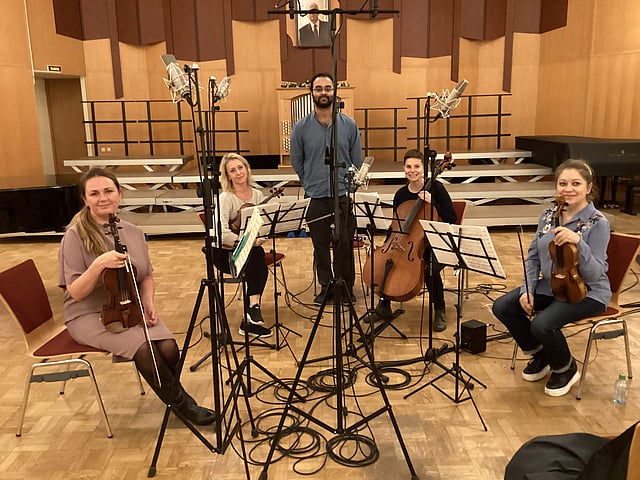 The String Quartet, although rather one-dimensional in timbre (especially when compared to an orchestra or wind instruments), has a very balanced sound, and the instruments complement and blend with each other very well, across different registers. I made sure that each instrument played the lead role at different points. Because I had a very clear and specific vision of the sound I wanted, I also went to the extent of telling the musicians which order to sit in.