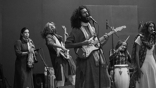 Then there was the song Naarad, pyar so antar nahi (There is no distinction in love), a kavitt (poem) which starts with a long aalap and rock beats. While one vocalist recites the lyrics, the other sings them in Indian classical style. The effect is contemporary, words that merge different times and captivate the audience. It seems the band, which also draws from poets such as Faiz Ahmed Faiz, AN Ludhianvi, Baba Nagarjun, Pash, is on a mission to bring old voices of reason to a new age of strife. Kabir was more than a poet, he was also an impatient social critic.