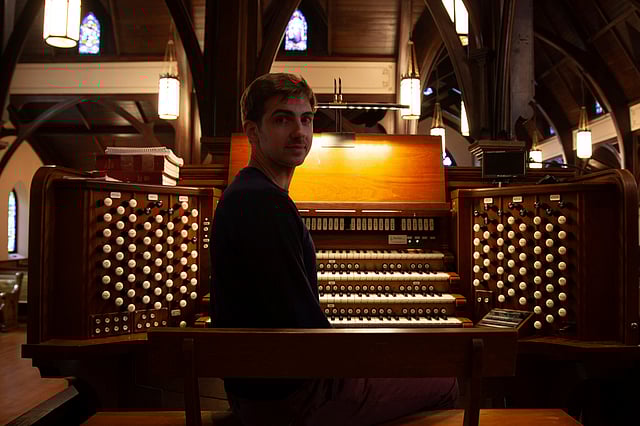 The 31-year-old's hands move easily between the four keyboards of the organ console, flanked by knobs controlling different sounds that are assembled into various combinations.