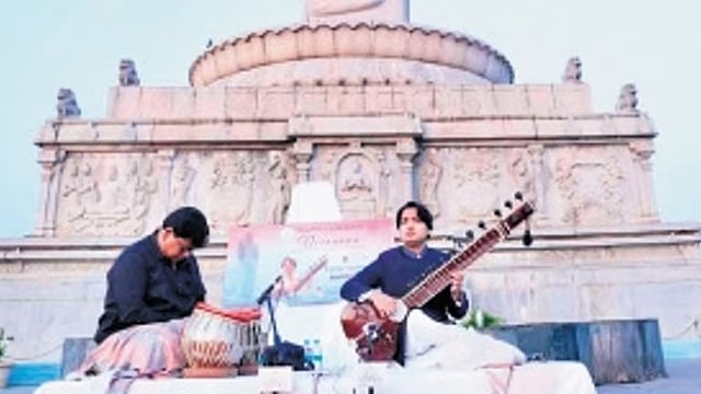 Around six in the morning, when the sun seemed indecisive about whether to peek out from the clouds in front of the iconic Buddha statue on Tank Bund, a group of music enthusiasts gathered in the chilly, serene place. The still waters surrounding them on all sides mirrored the calmness in the air, while the empty roads seemed to bow in reverence to the soulful sitar recital.