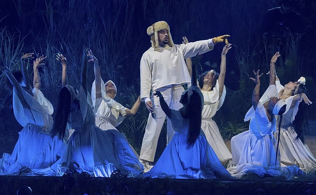 On Friday, Bad Bunny fans sported long ruffled skirts traditionally worn to dance bomba, while others donned straw hats known as a “pava,” worn by “jíbaros,” Puerto Rican peasants. Musicians and dancers wore the same outfits on the main stage, which at one point even featured live chickens.
