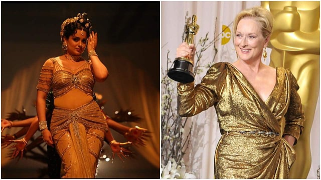 Kangana Ranaut just compared herself to Meryl Streep on Twitter and the Internet obviously has a lot of opinions. The actor has been sharing stills from her upcoming movies Dhaakad and Thalaivi on Twitter and claims in the captions that no other actor on the globe shares her range. She wrote, "Massive transformation alert, The kind of range I display as a performer no other actress on this globe has that