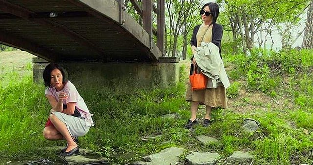 The film opens with a window overlooking a residential complex, the bars imprisoning her in her younger sister’s home. She is forlorn and so is the film, distant from the audience and lacking the sleight of hand that holds the frame and lets the words flow in a Sangsoo film. Two characters walk into a café and spend very little time with very little food. In another encounter, food is almost an afterthought. Are we really in Sangsoo universe?