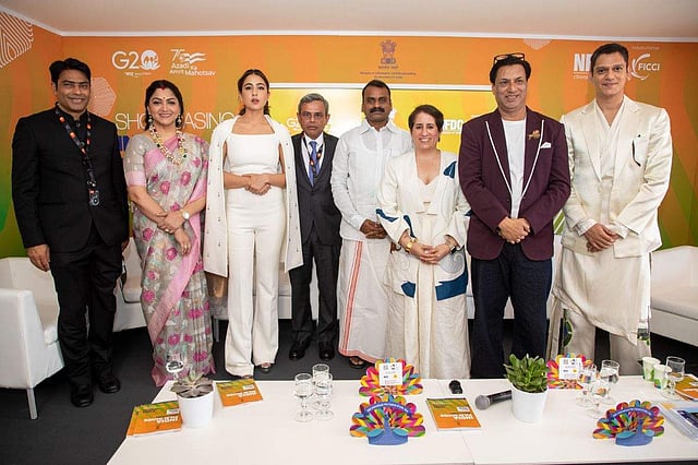 The India Pavilion at the 76th Cannes Film Festival was inaugurated on Wednesday by Minister of State for Information and Broadcasting L Murugan. Sara Ali Khan, Khushbu Sundar, Madhur Bhandarkar, Vijay Varma, Manushi Chillar and Esha Gupta were also present for the occasion and they posed together for pictures too. Some snaps from the inauguration ceremony were shared on Twitter by the official handle of FICCI (Federation of Indian Chambers of Commerce & Industry).