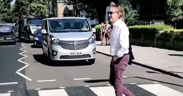 "Why did the Beatle cross the Abbey Road," Mary hilariously captioned videos of her famous father taking a stroll.
