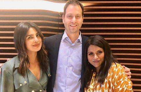 Priyanka Chopra and Mindy Kaling with Dan Goor
