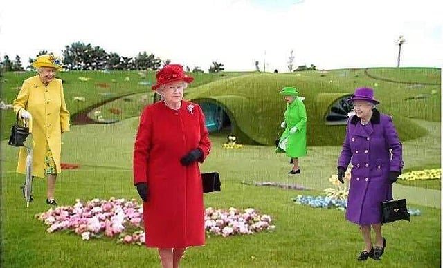 In a series of tweets, Musk shared the image of Elizabeth II wearing her iconic ensembles in the shades of red, yellow, purple and green.