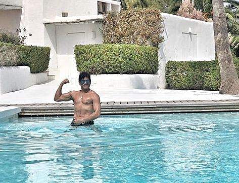 Actress Samantha, Nagarjuna’s daughter-in-law, posted pictures from the family trip. One of them features Nag showing off his chiselled abs in a pool.